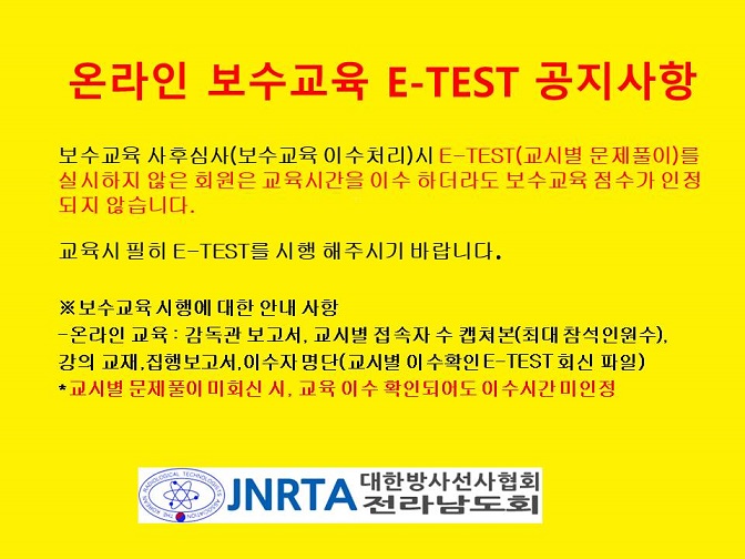 온라인 보수교육 E-TEST 공지사항 페이지 정보 작성자JNRTA 댓글0 조회106 작성일25.09.20 16:16 본문 다음글제 2회 전남종합학술대회 시상 및 상장 25.07.17 Comment 0 댓글목록 등록된 댓글이 없습니다.